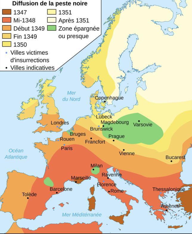 Carte : la diffusion de la peste en Europe