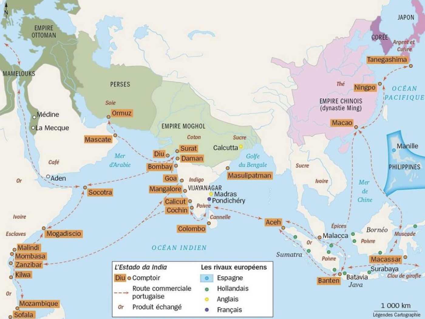 Ce n’est qu’avec l’essor maritime européen, à partir du XVIᵉ siècle, que les contacts deviennent plus directs. Les puissances européennes arrivent en Asie par la mer, s’installent dans des comptoires, et cherchent à commercer directement avec la Chine.