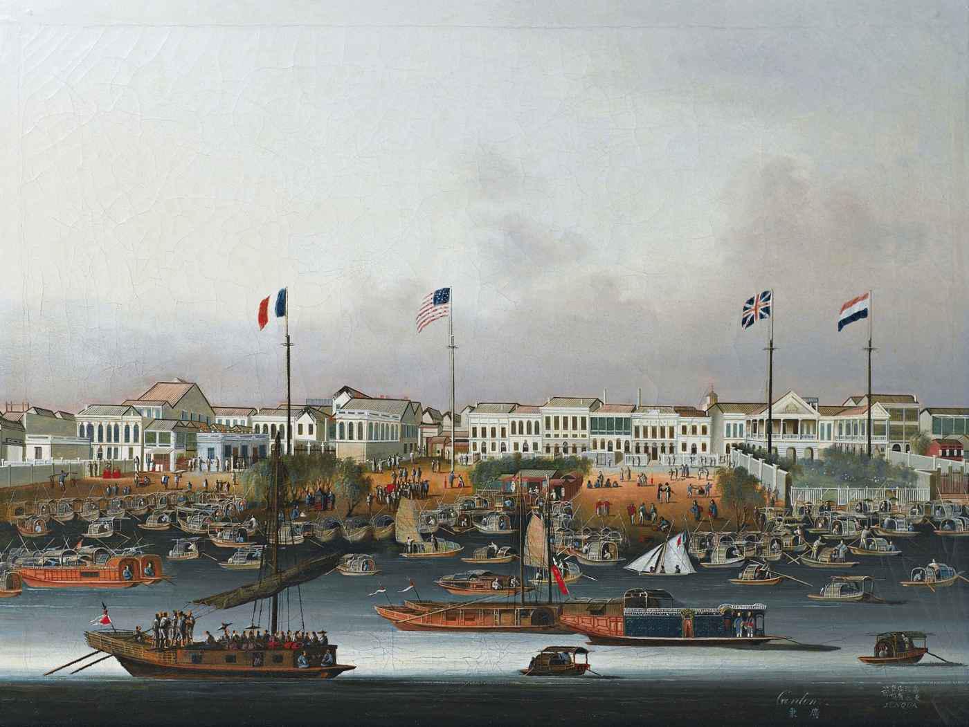 Mais la Chine encadre strictement ces relations. Le port de Canton est le seul ouvert aux européens. Les marchands étrangers y sont confinés dans des quartiers dédiés, soumis à des règles stricts, et ne peuvent commercer qu'avec des représentants nommés par le pouvoir. Ils ont interdiction d'apprendre la langue, de circuler à l’intérieur du pays, et de résider de façon permanente à Canton.