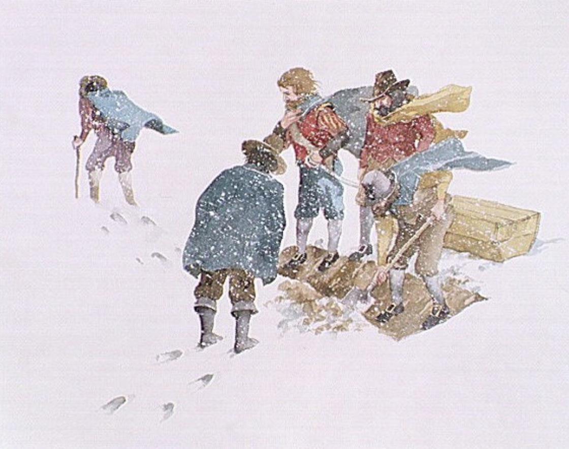 Un enterrement dans le blizzard, pendanrt l'hiver 1609-1610.