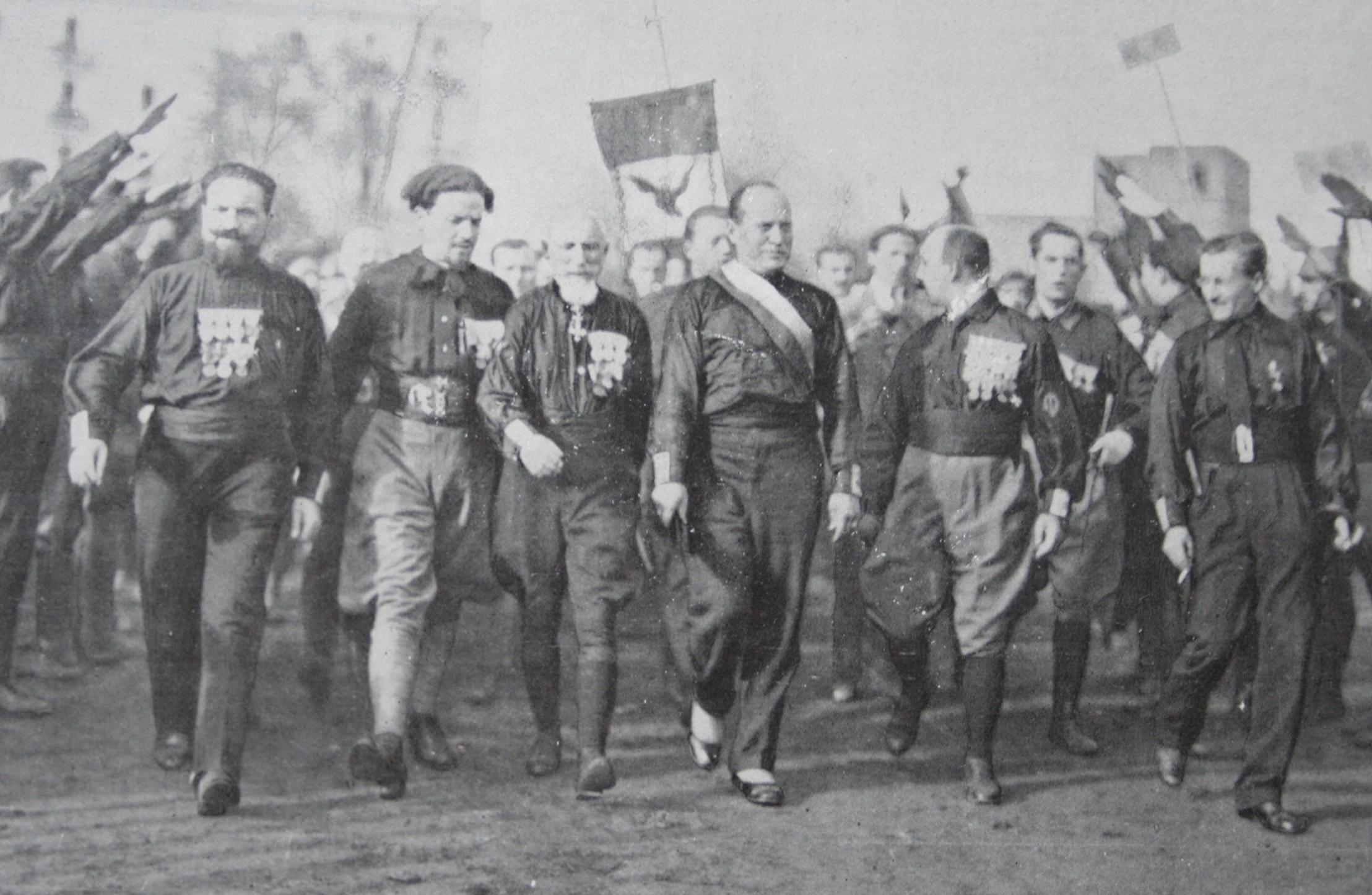 C’est dans cette atmosphère de chaos et de désillusion que Benito Mussolini, ancien socialiste révolutionnaire, fonde en mars 1919 à Milan les Fasci italiani di combattimento, futures chemises noires.