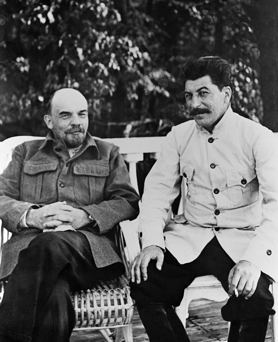 Staline (droite) visite Lénine dans son manoir, où il est retiré.