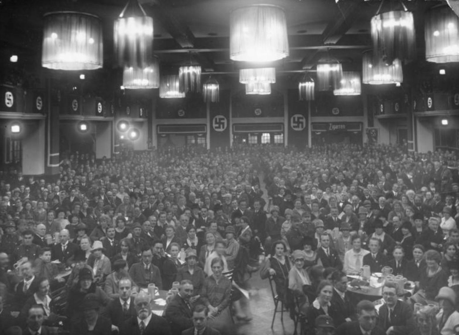 Meeting du NSDAP dans une brasserie Munichoise, peu avant le putsch de la brasserie.