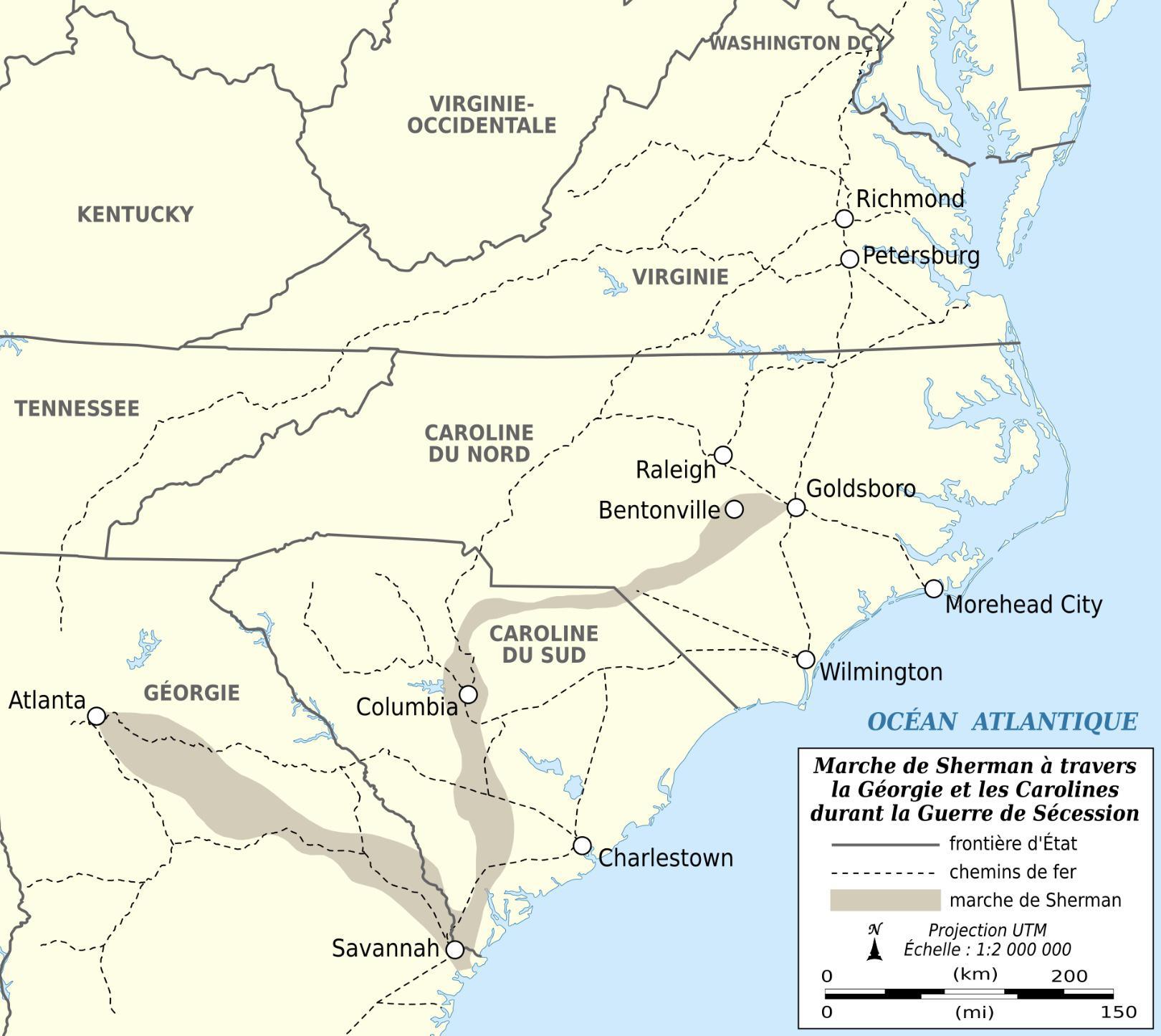 Dans le même temps, le général William Tecumseh Sherman mène une campagne décisive dans le Sud profond. Après avoir pris Atlanta, il entame la fameuse «Marche vers la mer» à travers la Géorgie.