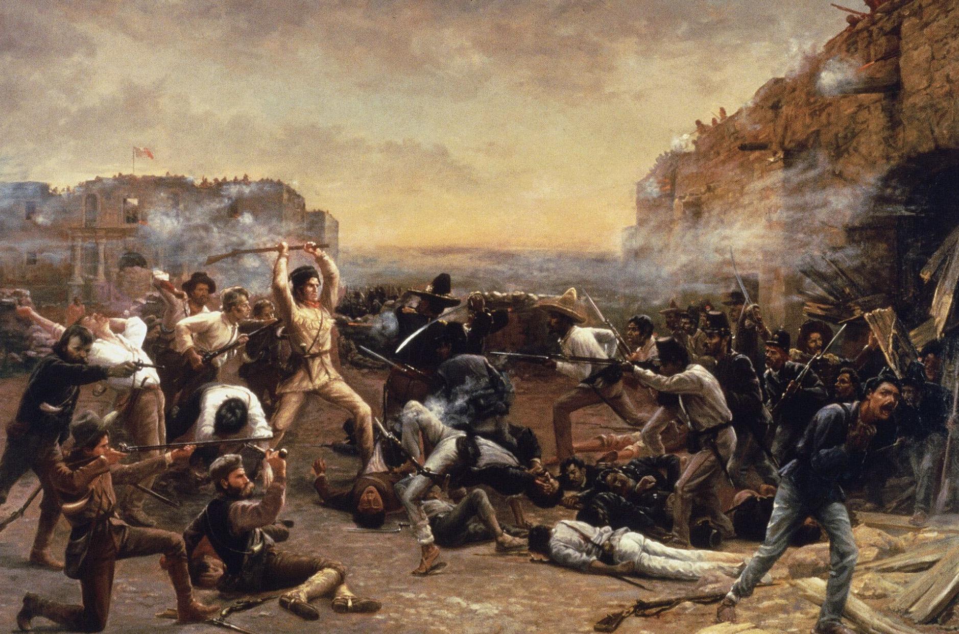 Le Siège de Fort Alamo : un petit groupe de résistants texans sont massacrés par l'armée mexicaine. Cet évènement devient un symbole héroïque pour les texans.