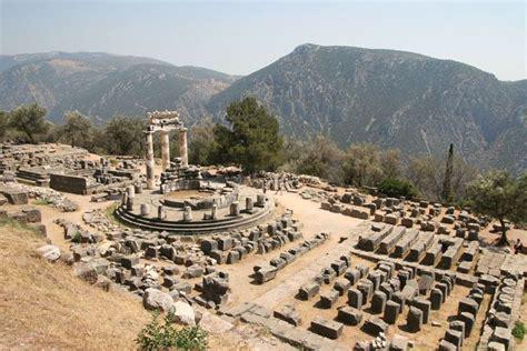 Delphes, par son sanctuaire panhellénique, devient vite le centre du monde grec, et ce dès le VIe siècle avant J.-C., car des pèlerins et des ambassadeurs du monde entier cherchent à consulter la pythie pour connaître les volontés des dieux.
