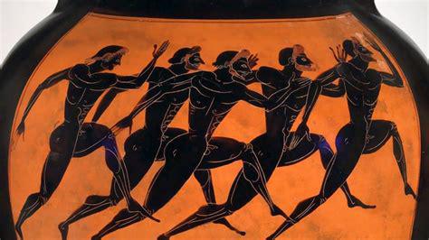 Les athlètes qui s'affrontent à Olympie comme dans toutes les compétitions panhelléniques sont exclusivement des hommes – et bien évidemment des hommes libres. À l'exception des auriges qui conduisent les chars, tous les athlètes se présentent nus et oints d'huile.