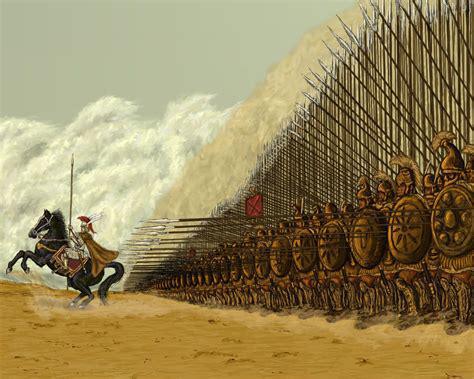 L'armée d'Alexandre dispose d'une grande supériorité tactique et technique sur ses adversaires. La cuirasse de 15 kg et le bouclier de 1 mètre de diamètre, qui alourdissent les hoplites grecs, ont été abandonnés à l'initiative de Philippe II. Les phalangites macédoniens portent un équipement défensif allégé et sont principalement armés d'une longue pique.