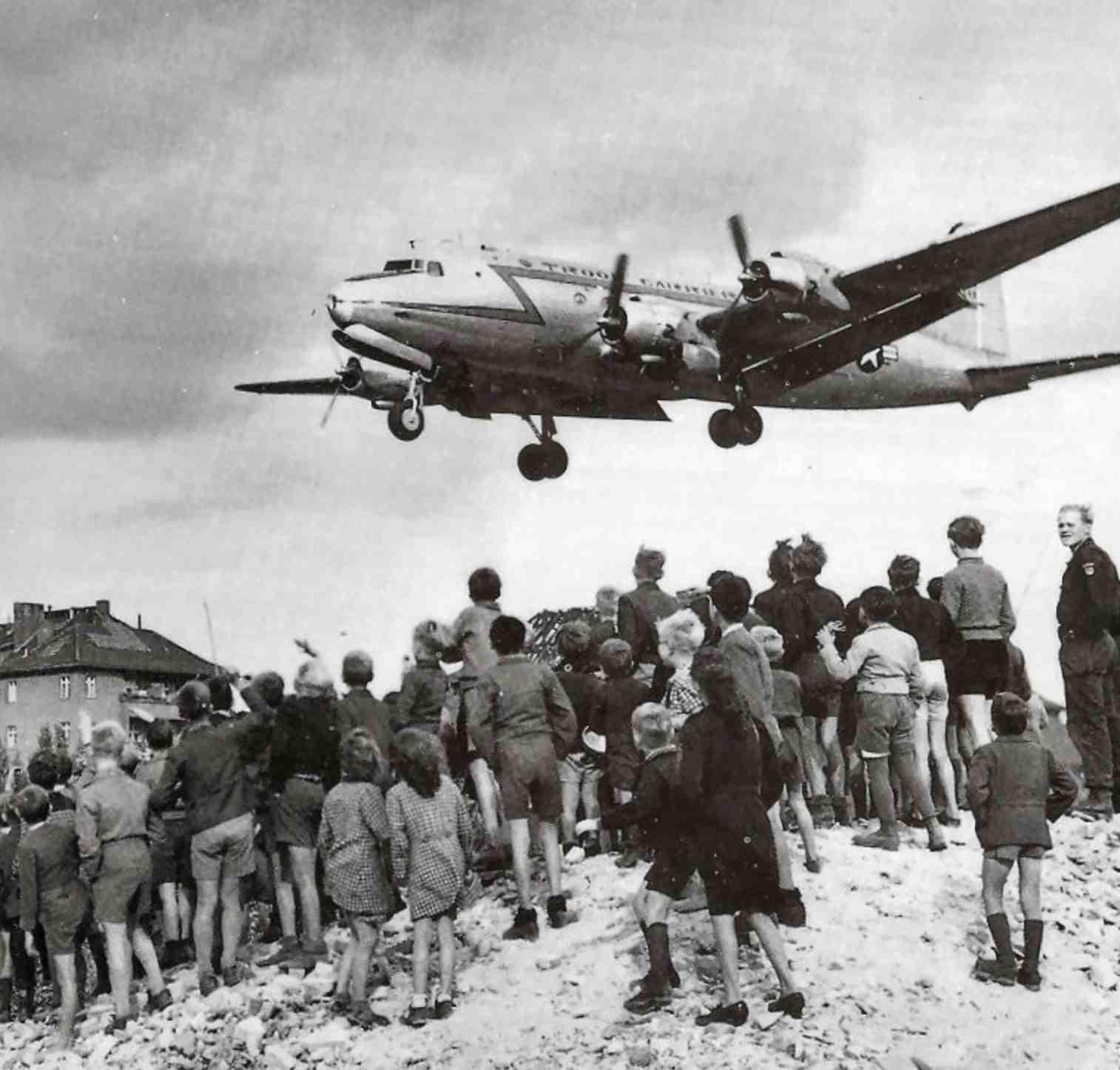 Pour les berlinois, le salut viendra des airs, car si Staline a bloqué les routes, il ne peut pas bloquer le ciel ! Américains et Britanniques vont mettre en place d'un Pont Aérien pour ravitailler la ville. C'est l'opération "Victuailles", le plus impressionnant ravitaillement aérien de l'histoire.