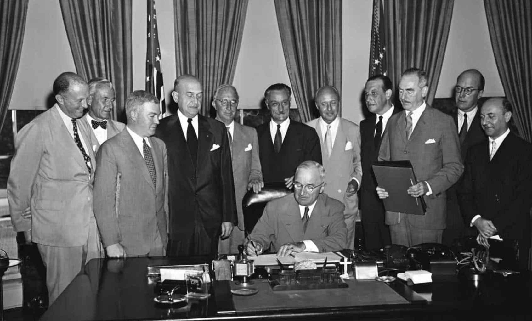 Signature du Traité de l'Atlantique Nord à la Maison Blanche.