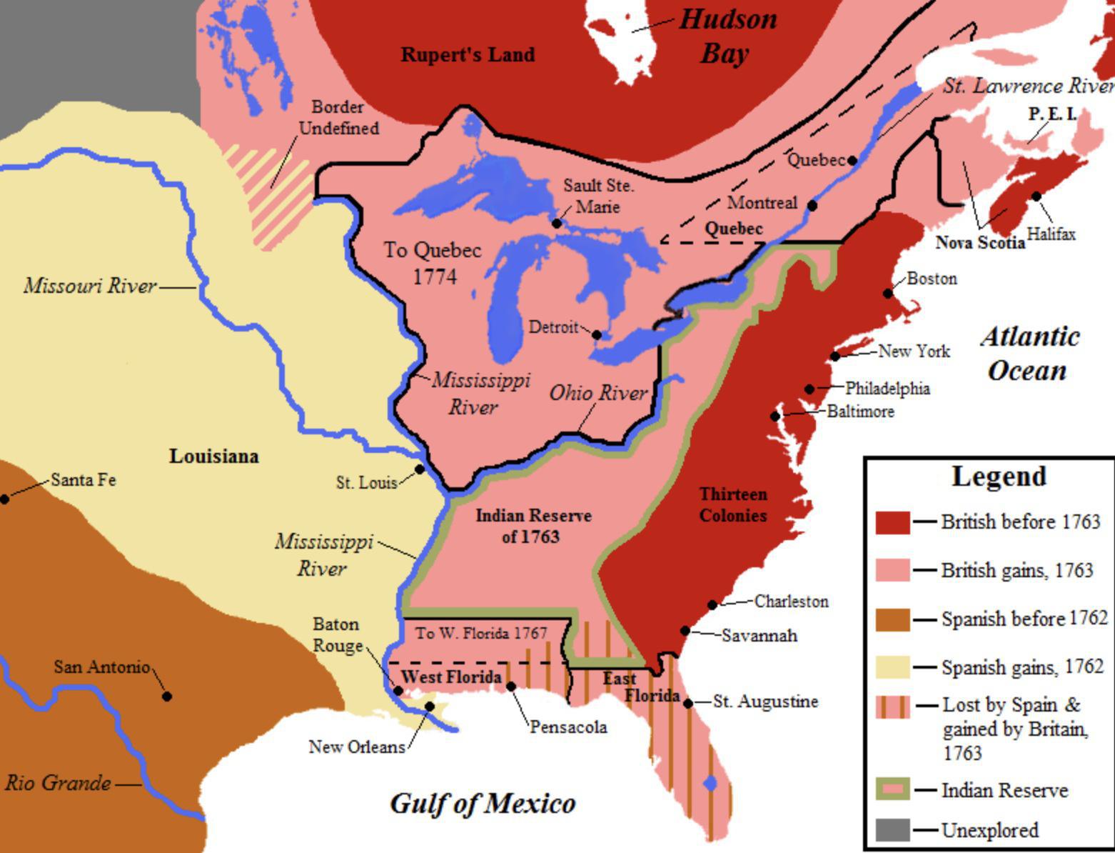 Le traité de Paris n'officialise aucune annexion majeur en Europe, mais de nombreuses en Amérique du Nord : le Québec et la Floride sont absorbées par l'Angleterre.