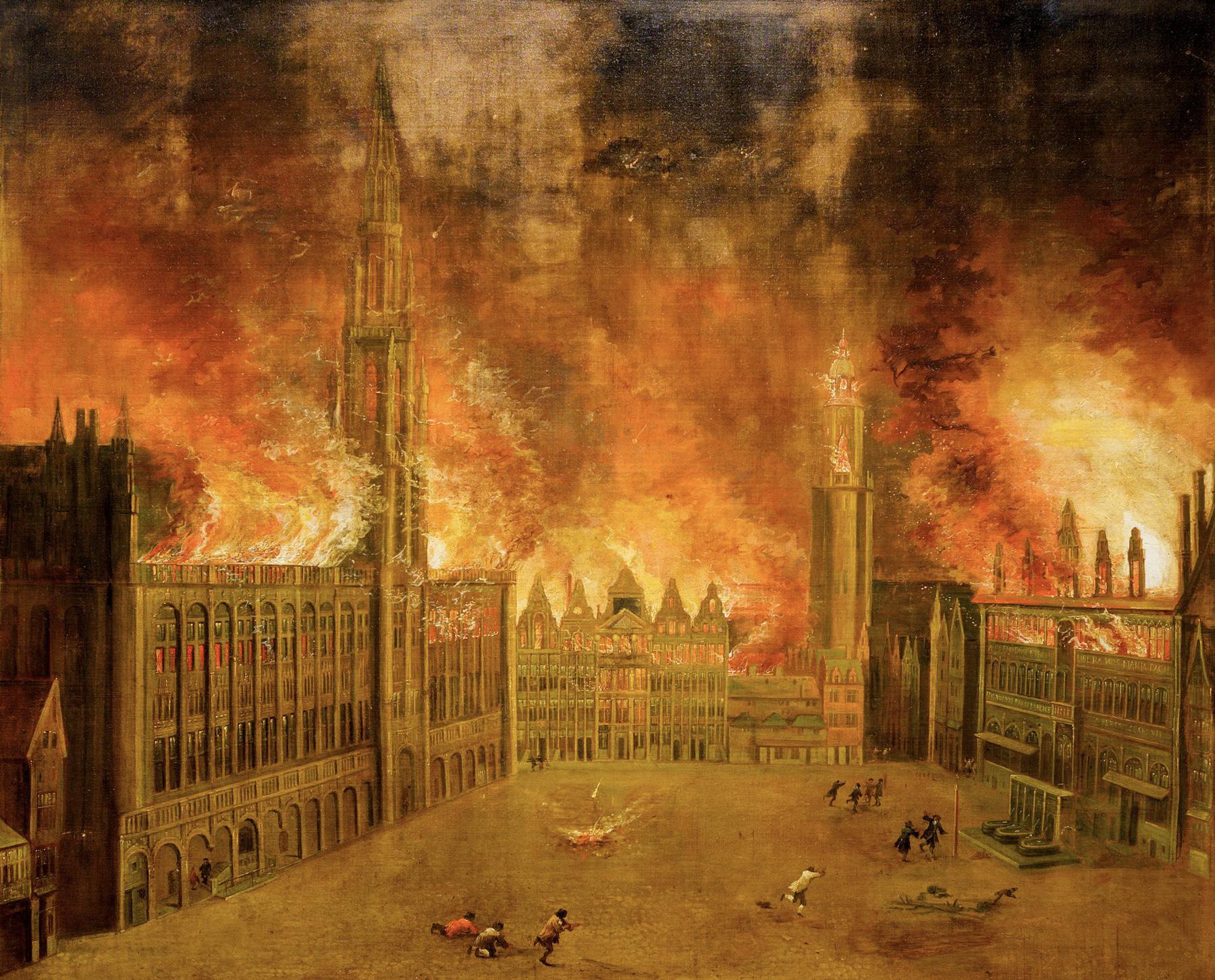 La grande place de Bruxelle, en flammes après le bombardement français.