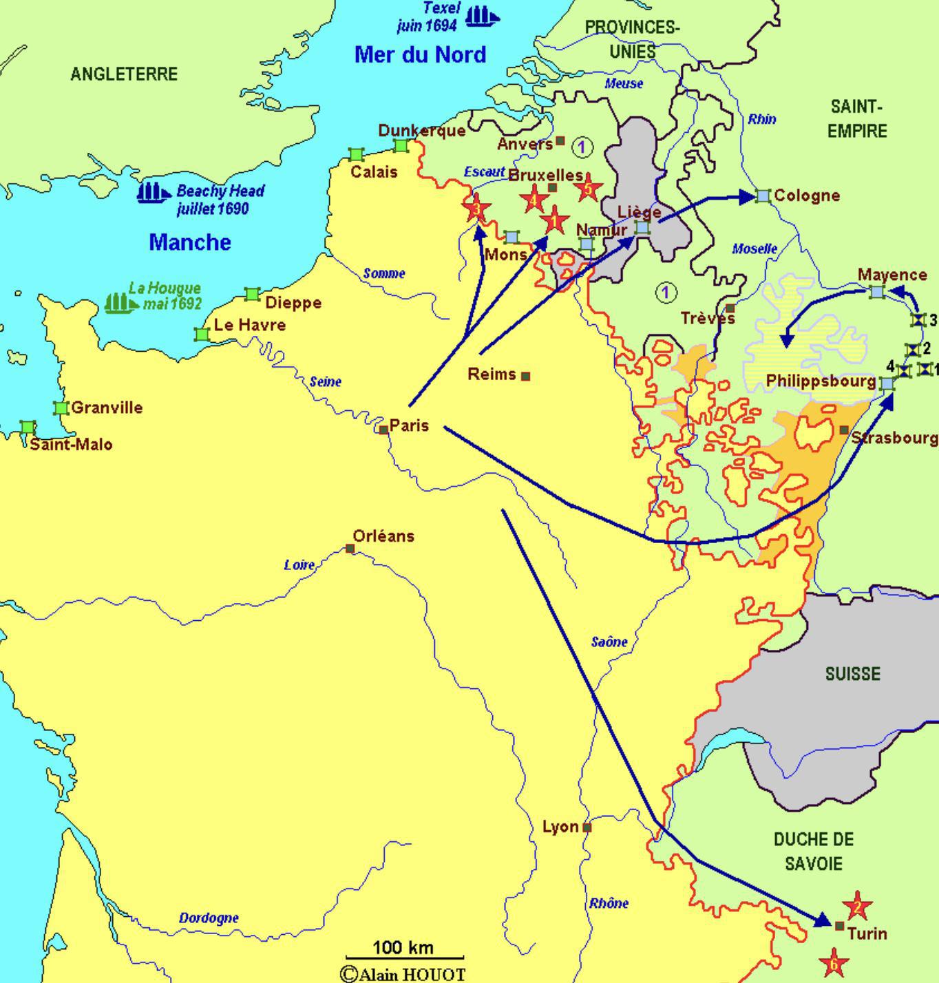Carte : la guerre de la ligue d'Augsbourg