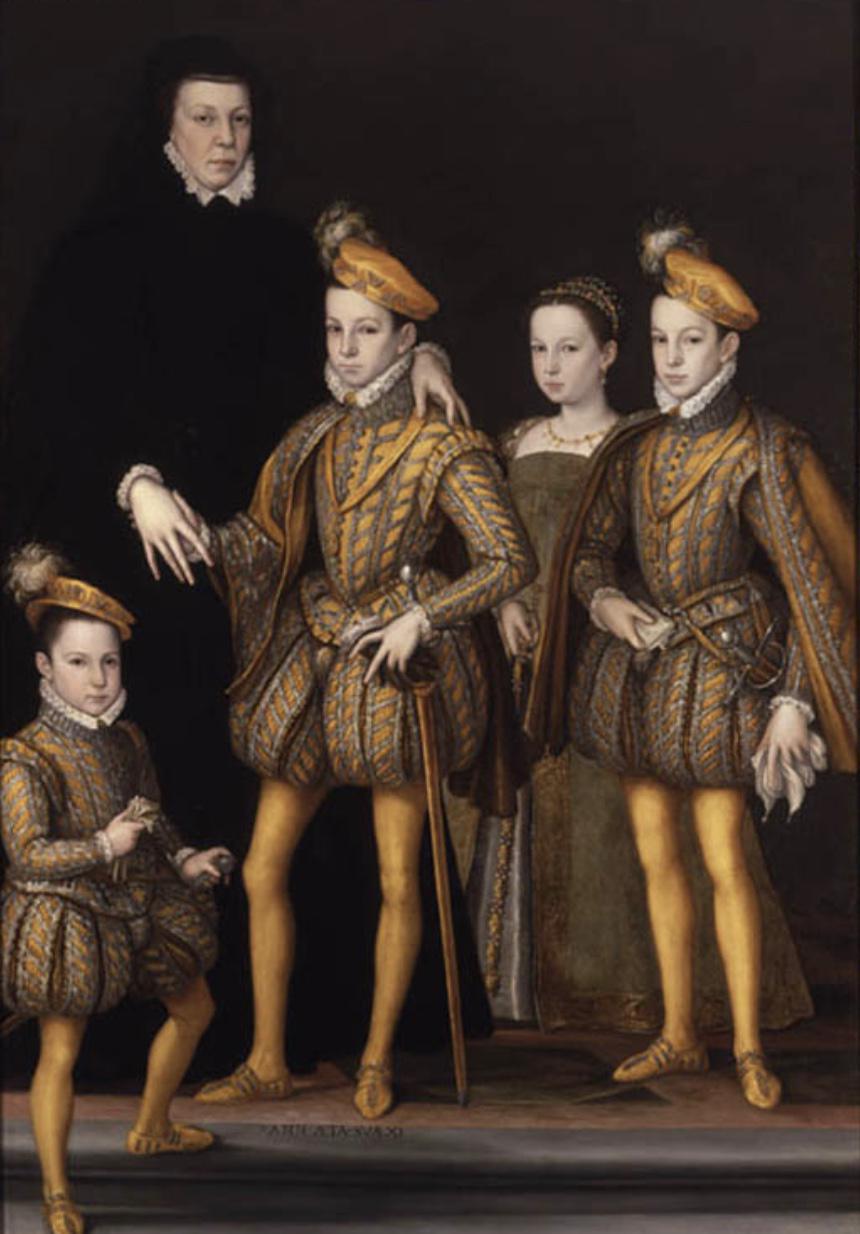 Catherine de Médicis et ses enfants. Elle deviendra la mère de trois rois de France et d'une Reine, tout en dirigeant le pays à travers l'une de ces période les plus critiques.