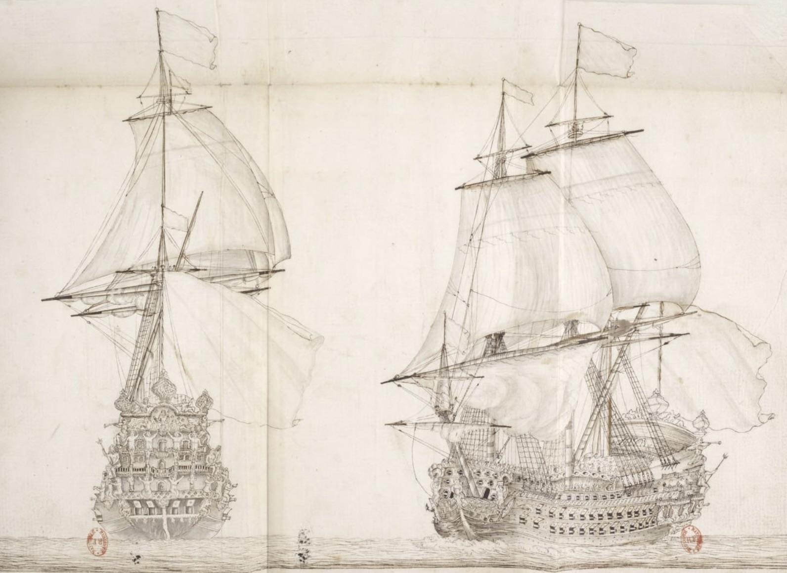 Dessin du Royal-Louis, vaisseau de plus de 100 canons construit en 1668