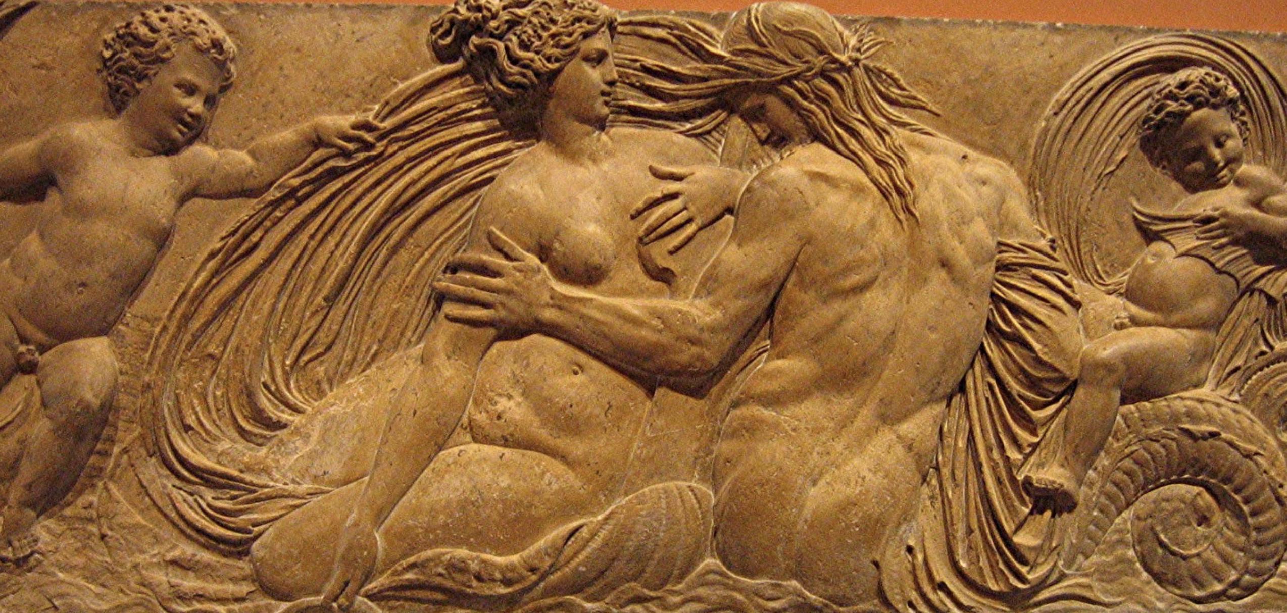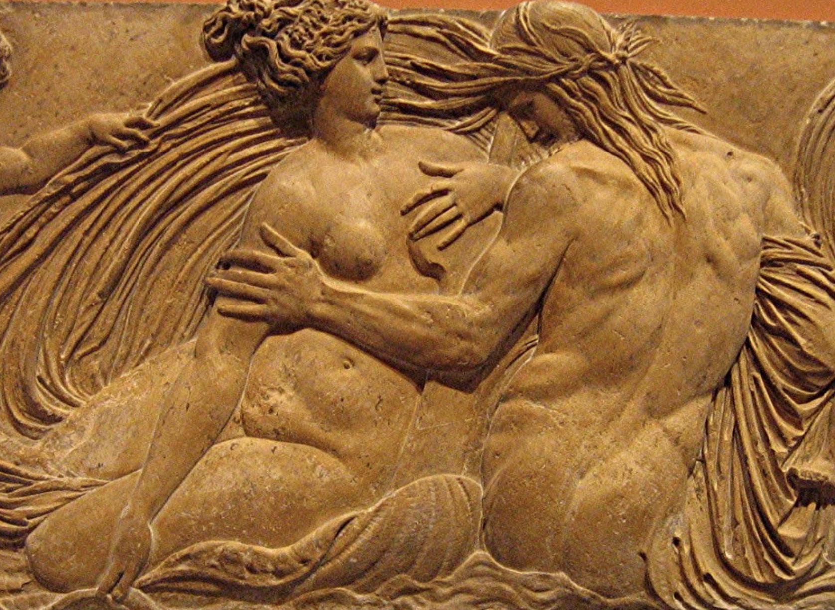 Relief au triton et à la nymphe, anciennement sur la fontaine des innocents. Aujourd'hui exposé au Louvre (Jean Goujon, 1549)
