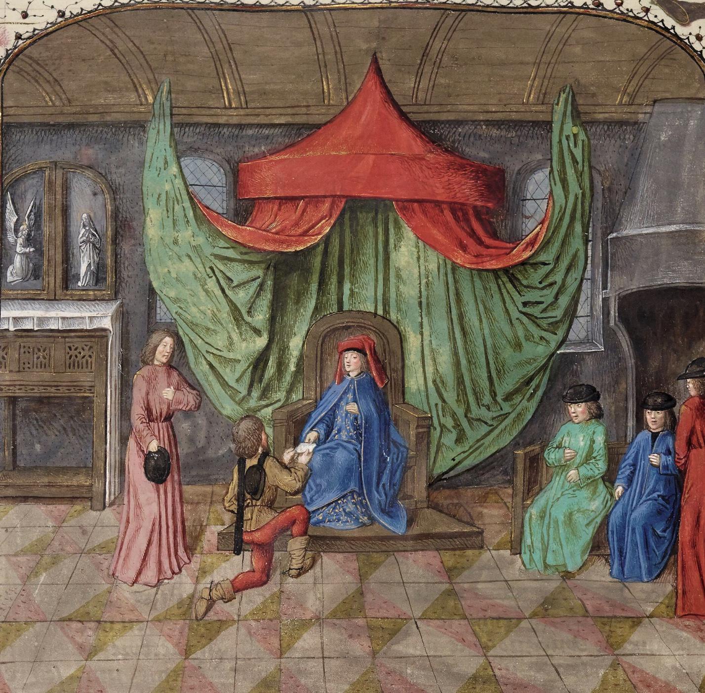 Un messager annonce à Charles la mort de son père, le roi Charles VI.