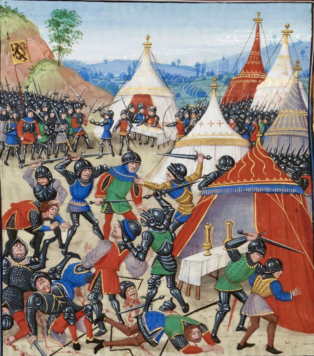 En parallèle, les Flandres constituent un autre point de friction majeur. Riche région textile, les villes flamandes dépendent de l’Angleterre pour leurs importations de laine. Ce lien économique se double d’un lien politique : les milieux urbains flamands, en particulier à Gand, sont hostiles à la domination française et se tournent vers l’Angleterre pour obtenir appui et protection. Philippe VI, lui, soutient le comte de Flandre, tenu de loyauté envers la couronne française. Cette lutte d’influence débouche sur des affrontements militaires indirects.