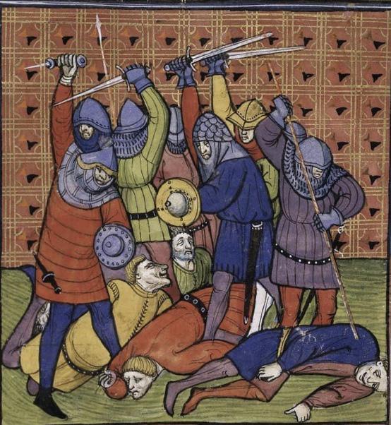 Le 31 juillet 1358, Étienne Marcel est assassiné par Jean Maillart, un notaire parisien loyal au dauphin, alors qu’il tente d’ouvrir les portes de la ville à des alliés extérieurs.