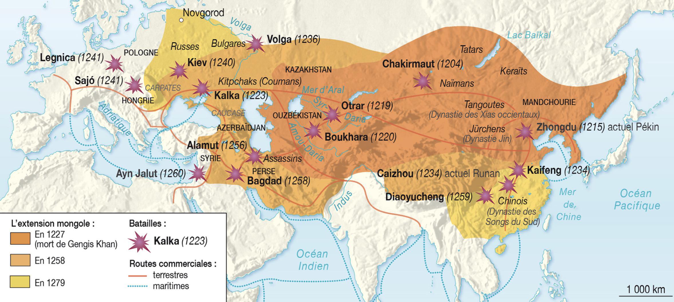 Carte : l'avancée des mongols