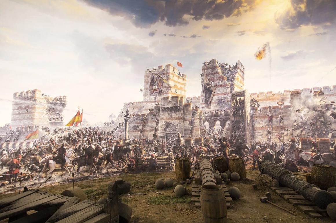 Le 6 avril 1453, Mehmed II lança le siège de Constantinople. Grâce à l’artillerie moderne, notamment un gigantesque canon conçu par un ingénieur hongrois, les Ottomans bombardèrent les murailles de la ville. Les remparts de Théodose, qui avaient protégé la ville depuis un millénaire, furent brisés par la puissance de feu moderne.