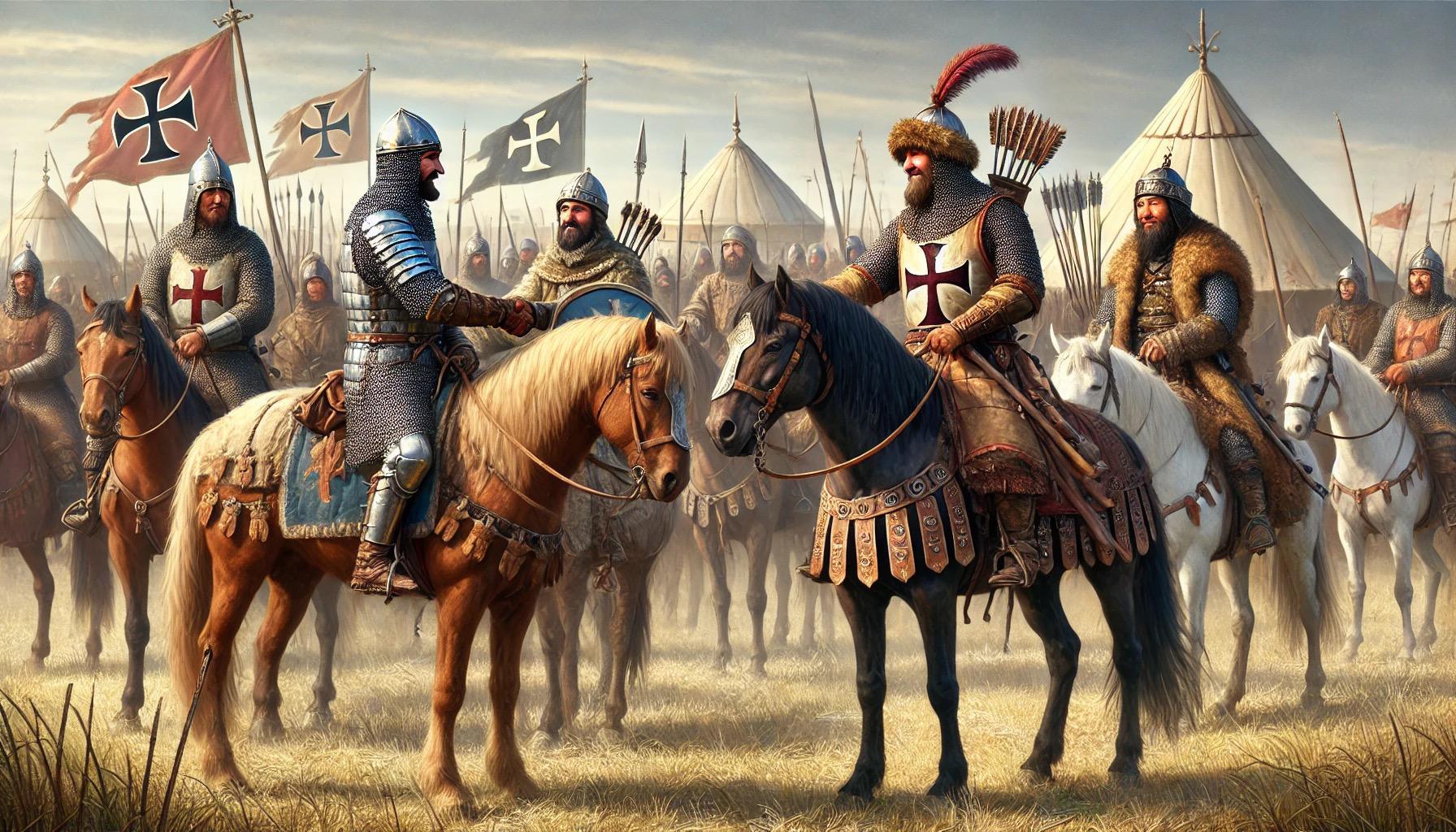 Les premières initiatives diplomatiques prirent forme sous l’impulsion de la papauté. En 1245, le pape Innocent IV envoya plusieurs émissaires, dont Jean de Plan Carpin, pour établir des relations avec les khans mongols. Les réponses de ces derniers furent cependant ambiguës, proposant bien une coopération contre les musulmans, mais en exigeant la soumission des occidentaux. Ces messages reflétaient la vision mongole du monde, fondée sur l’idée que tous les royaumes, même leurs alliés, devaient reconnaître leur autorité suprême.