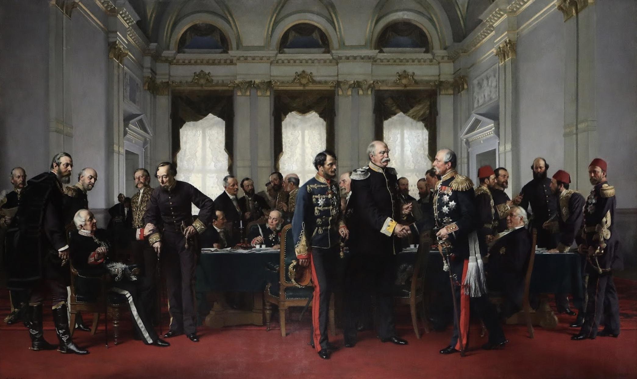Bismarck organise le Congrès de Berlin, en 1878. L'Allemagne se pose alors en arbitre, partisan du compromis diplomatique.
