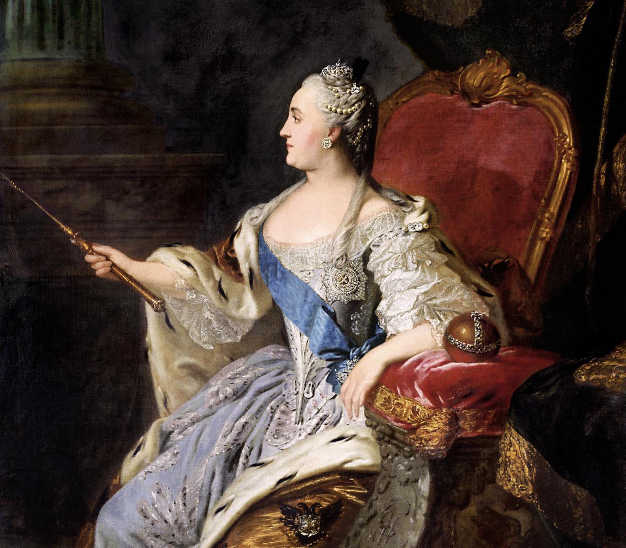 Catherine naît dans une petite principauté allemande. Elle se marie en 1745 au futur tsar Pierre III, puis parvient à s’imposer comme impératrice après un coup d’État qui renverse son époux en 1762.