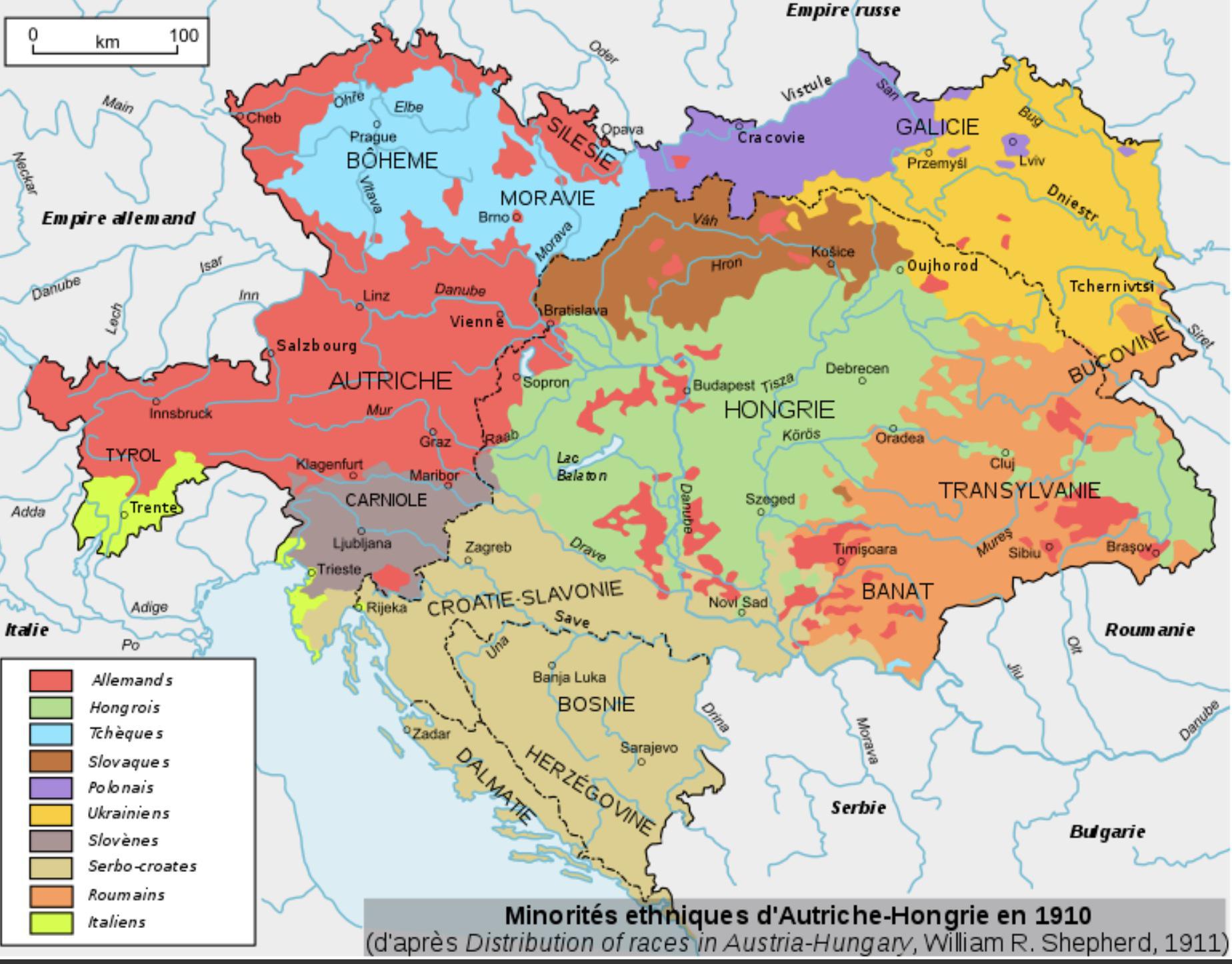 - L’Empire austro-hongrois abrite plus de dix nationalités qui réclament autonomie ou indépendance : Tchèques en Bohême, Serbes en Bosnie, Croates, Roumains de Transylvanie...