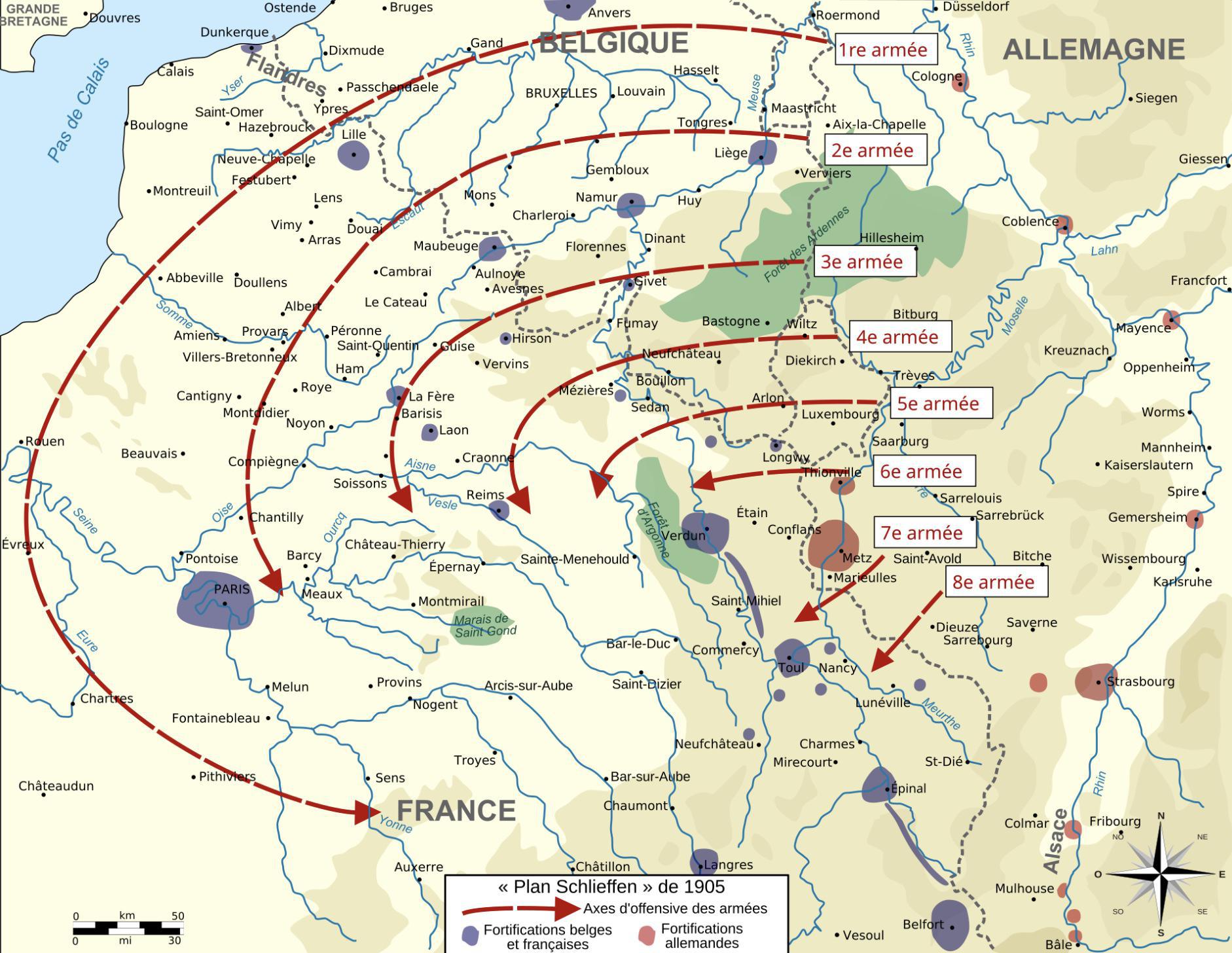 La plan Schlieffen, qui prévoit la traversée de la Belgique