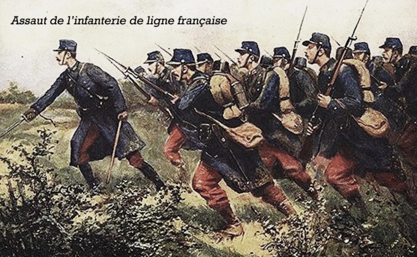 Les troupes françaises avancent en formation, sans connaissance suffisante du terrain, souvent mal coordonnées. L’ennemi, mieux positionné et fortement armé, leur inflige des pertes catastrophiques au canon et à la mitrailleuse.