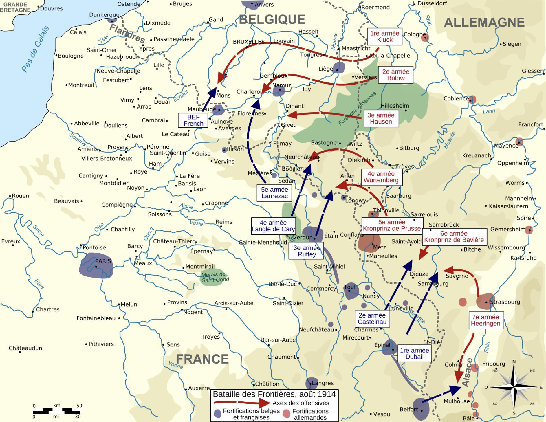 L’offensive allemande est massive, structurée et bien coordonnée. Après la conquête de la Belgique, l'armée impériale progresse rapidement vers la France. Son but est de s’emparer rapidement de Paris, coeur logistique de l'armée française.