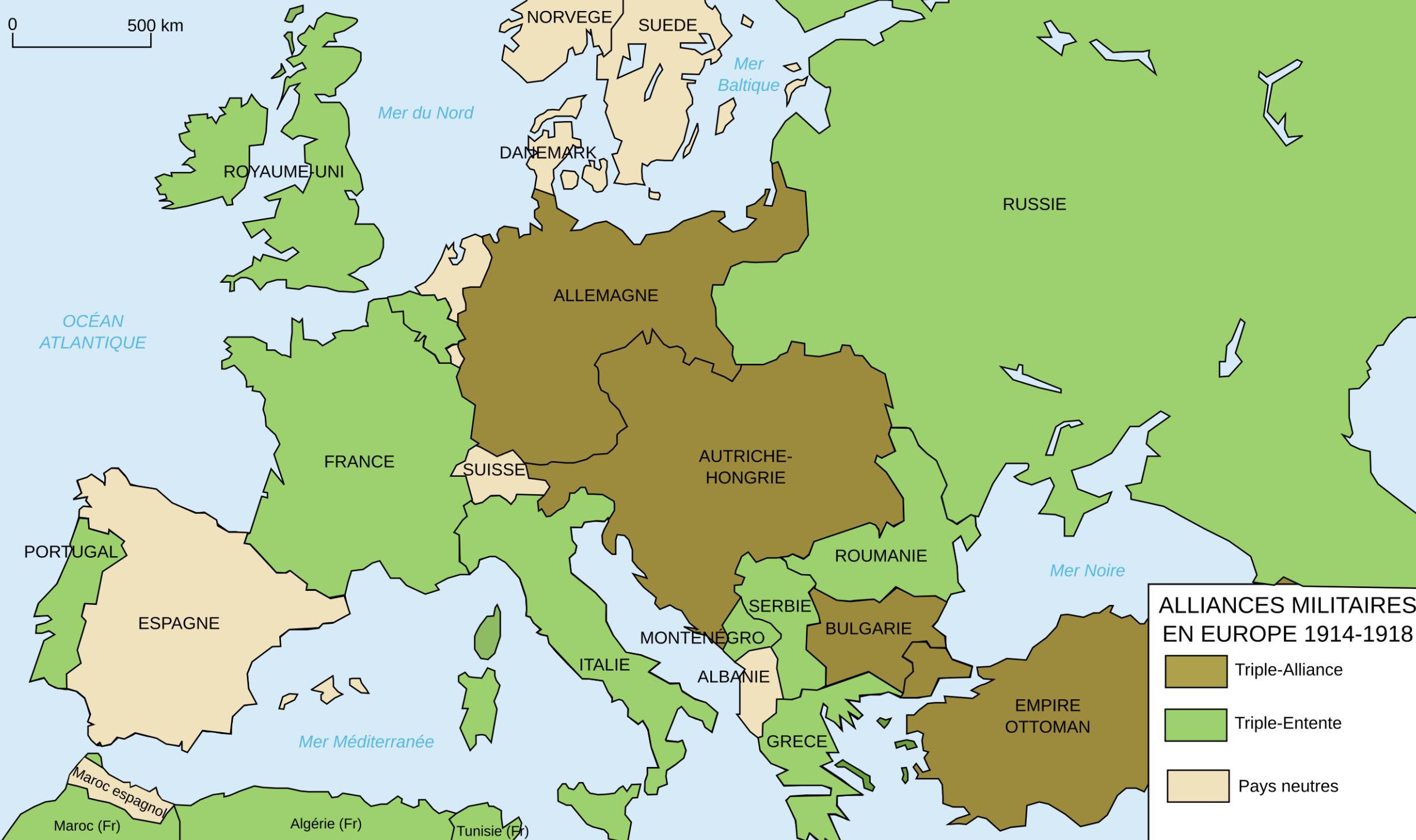 Le système d’alliances militaire mis en place au début du siècle transforme cette crise en guerre généralisée :