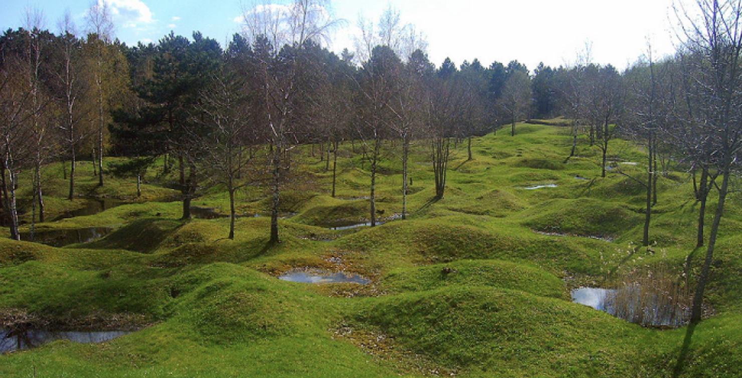 Ci-dessous, une forêt de Verdun, aujourd'hui encore parsemée de cratères d'obus.