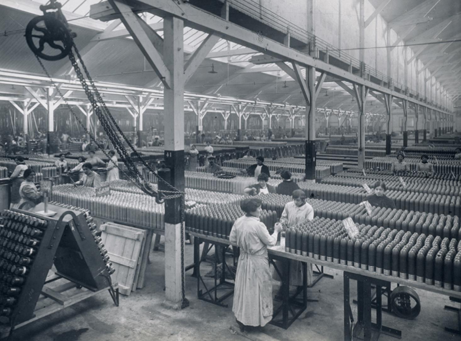 Cette réorientation industrielle implique une recomposition du monde du travail. Les hommes en âge de combattre sont massivement mobilisés, ce qui crée une pénurie de main-d’œuvre dans les usines. Pour y pallier, les États font appel aux femmes, qui entrent en masse dans les usines d’armement.