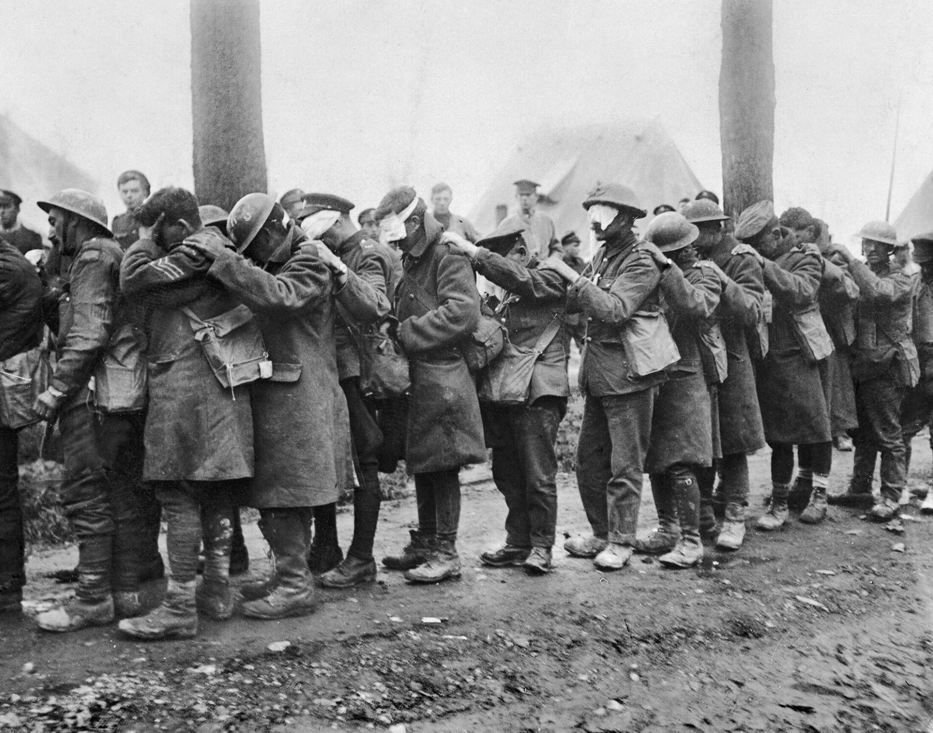 File de soldats britannique rendus aveugles par les gazs lacrymogènes