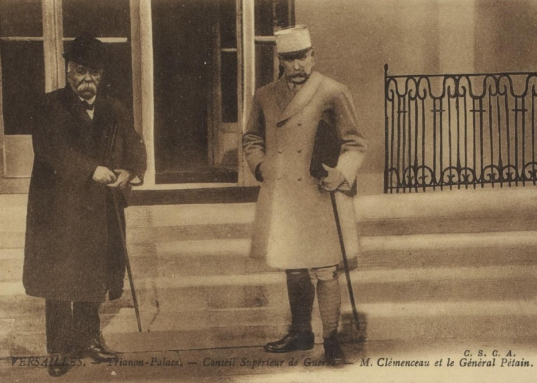 Pétain (à droite) et Georges Clemenceau, chef du gouvernement en 1917. Ces deux personnalités vont mettre fin à la crise en apportant plus de considération à la condition des soldats.