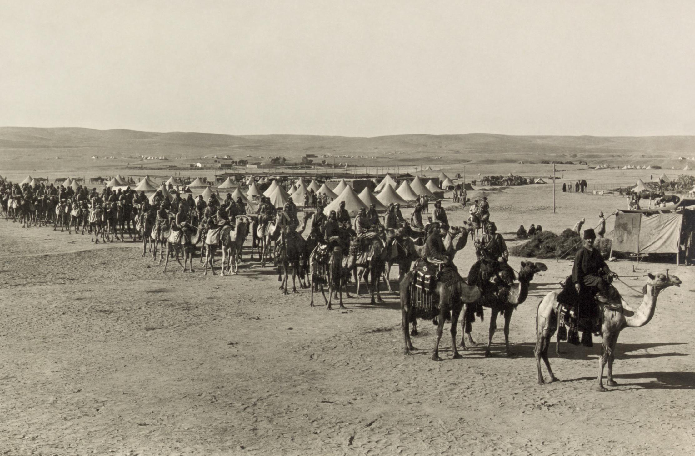 La cavalerie ottomane, sur des dromadaires. Les ottomans mèneront plusieurs assauts sur le canal de Suez, sans jamais réussir à le prendre aux britanniques.