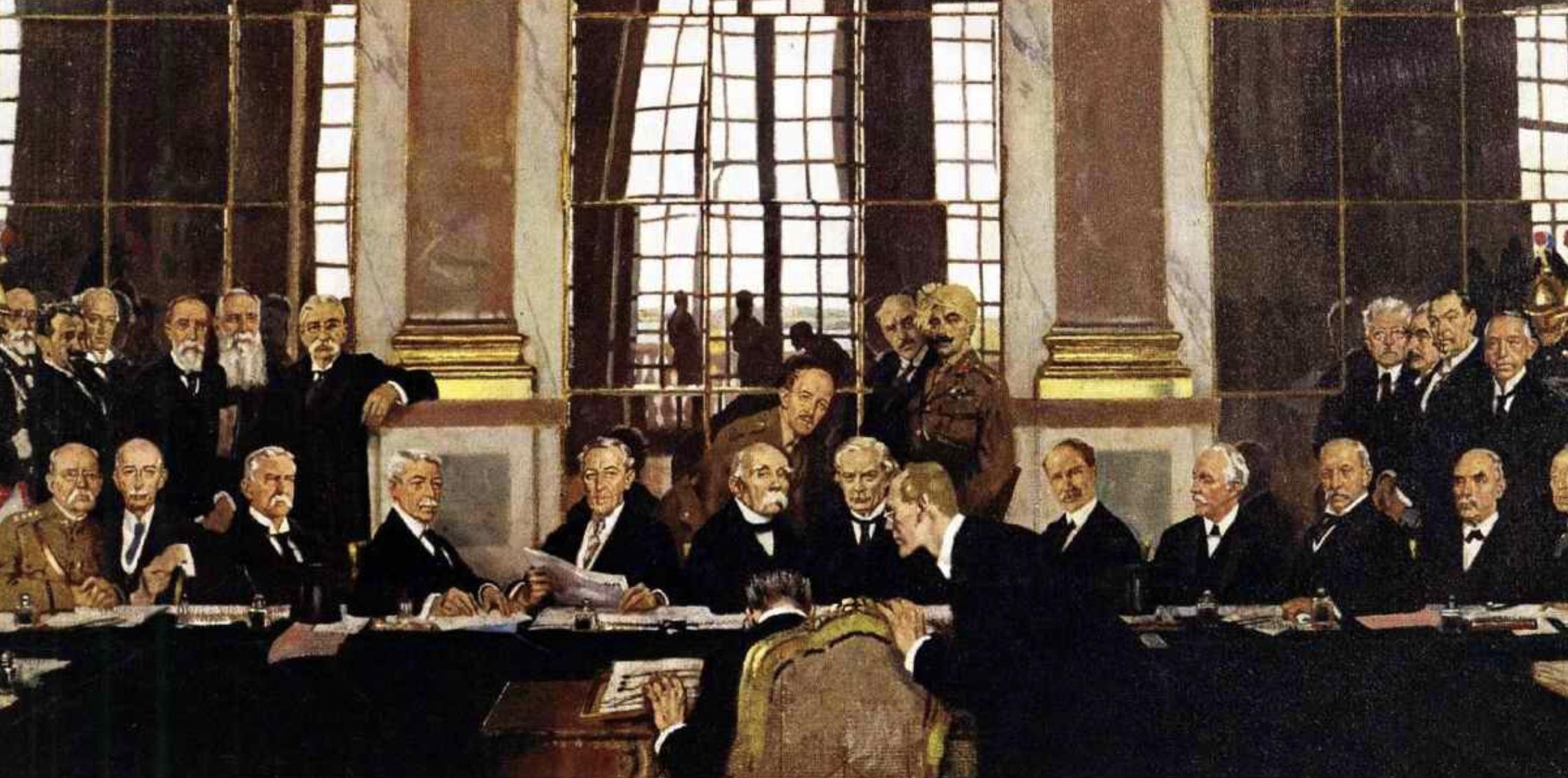 Le 28 juin 1919, dans la galerie des Glaces du château de Versailles, les représentants de l’Allemagne vaincue signent un traité de paix qu’ils n’ont ni négocié ni approuvé. Cinq ans jour pour jour après l’attentat de Sarajevo, c'est la fin officielle du conflit. Mais ce traité de paix est perçu en Allemagne comme une reddition humiliante, aux conditions arbitraires et excessivement évères.