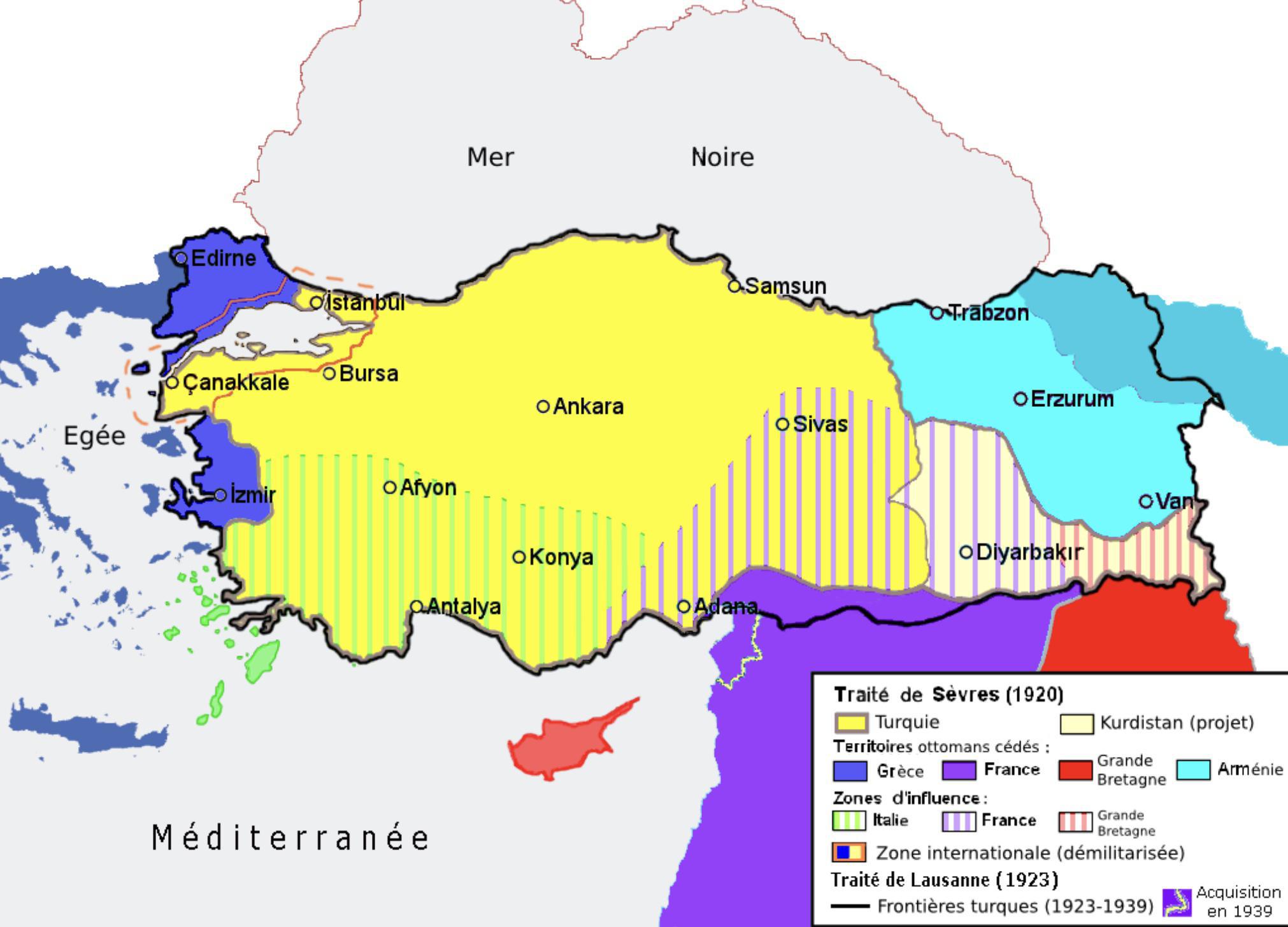 L’Empire ottoman, lui aussi affaibli, est promis à un partage entre puissances alliées, formalisé dans le traité de Sèvres (1920).