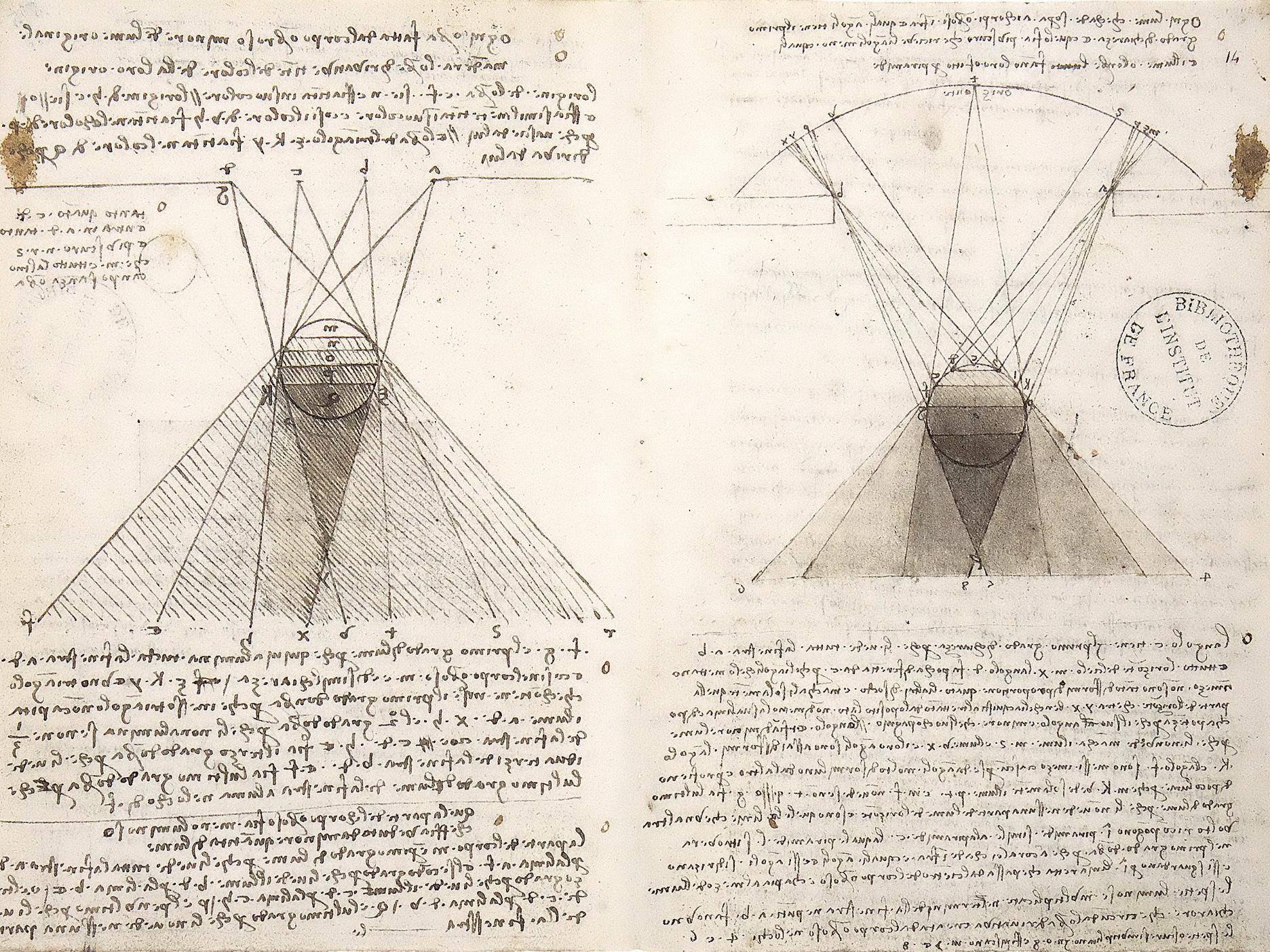 Il remplit des carnets de croquis, de notes et de schémas, couvrant des domaines aussi variés que l’anatomie, l’optique, la mécanique, l’hydraulique et l’urbanisme.
