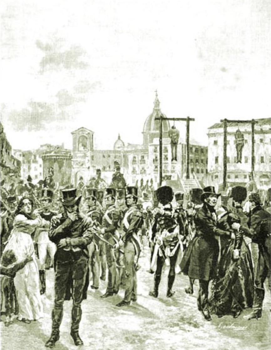 Des conspirateurs sont pendus, à Naples, après l'échec d'une insurection.