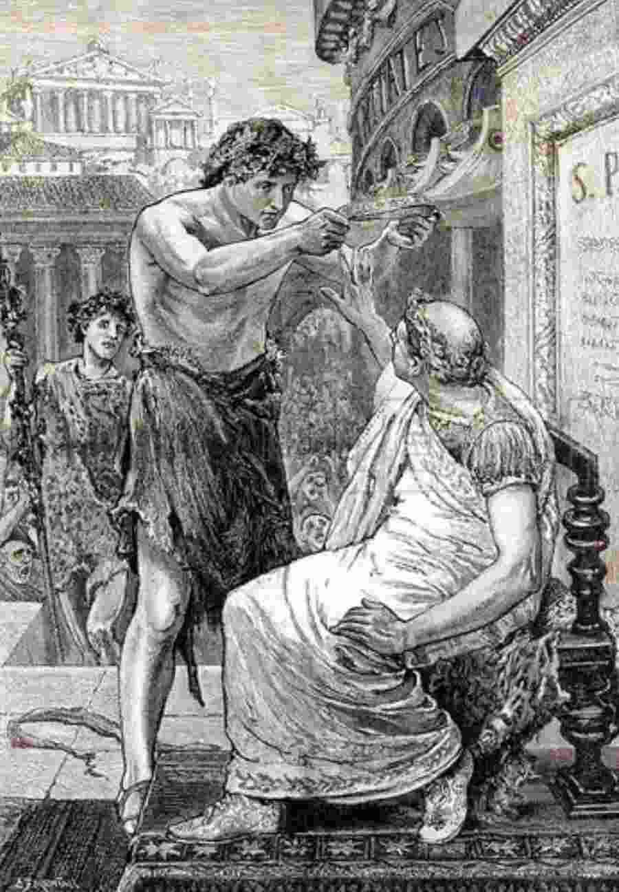 César est symboliquement couronné roi par Marc Antoine, un geste qui précipitera son assassinat.