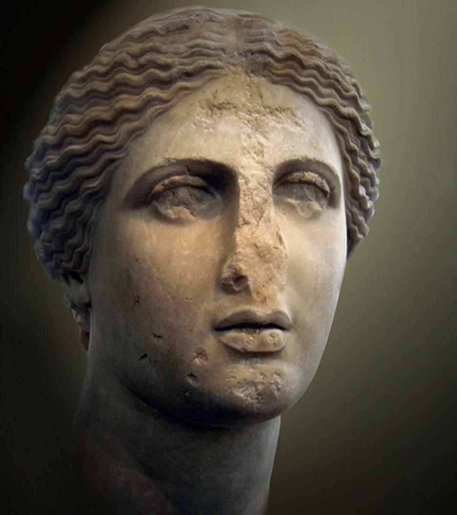 Tête d'Aphrodite, marquée d'une croix chrétienne