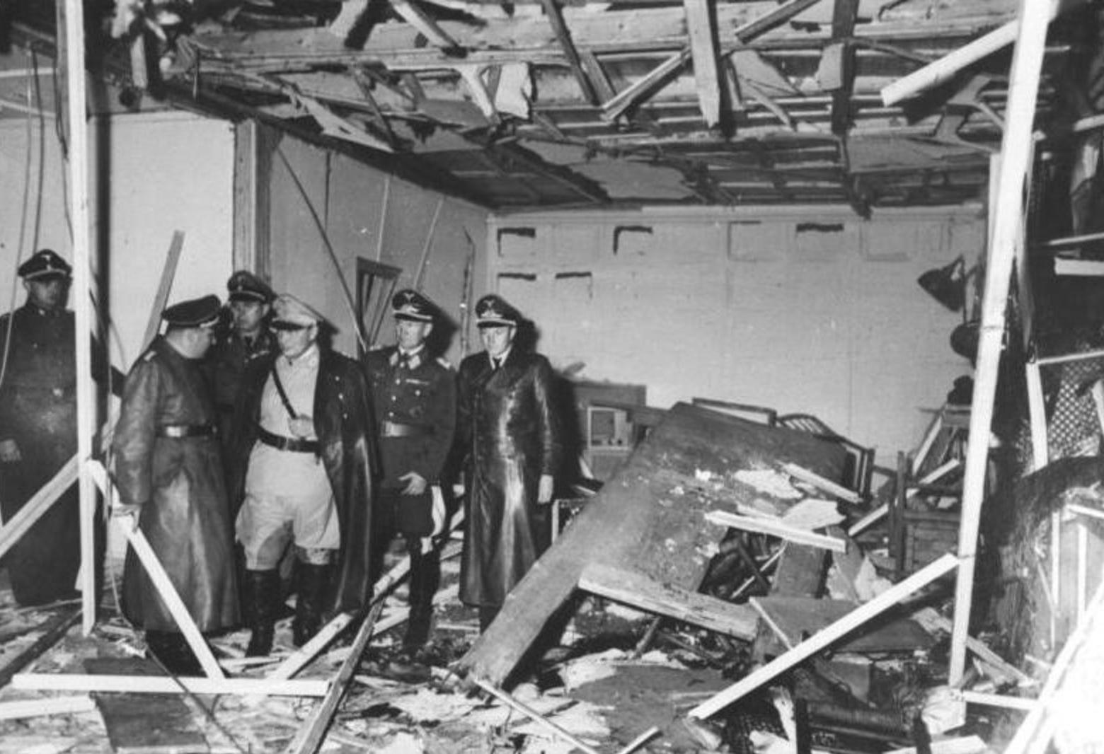 Göring visite la salle où a explosé la bombe.